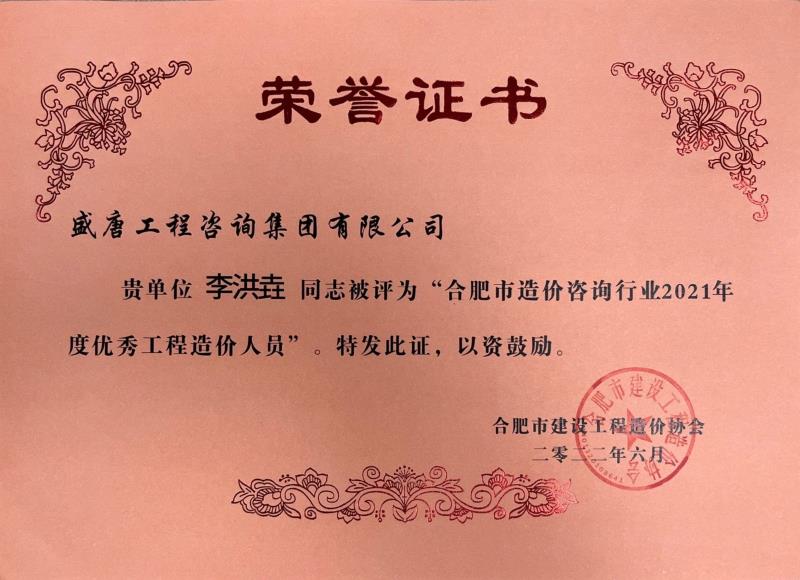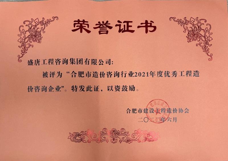 合肥市第二届建设工程造价技能竞赛团体优秀奖