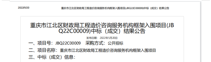 值此端午佳节,鹊传喜讯,风送佳音。在重庆市江北区财政局工程造价咨询服务机构框架入围项目中,爱游戏Home顺利中标!