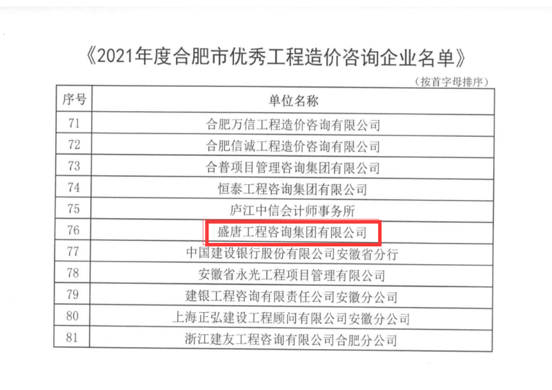 热烈祝贺盛唐集团荣获2021年度优秀造价咨询企业奖